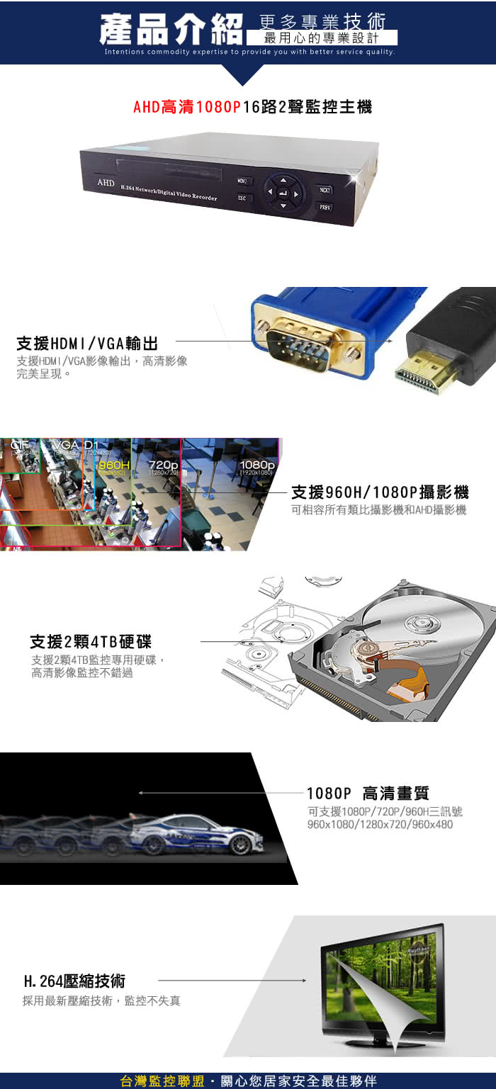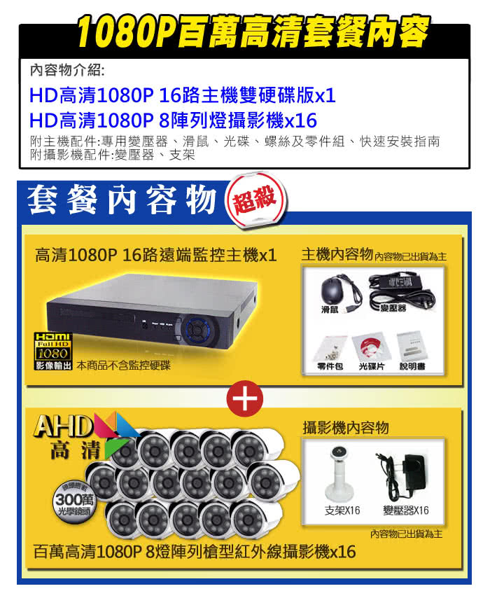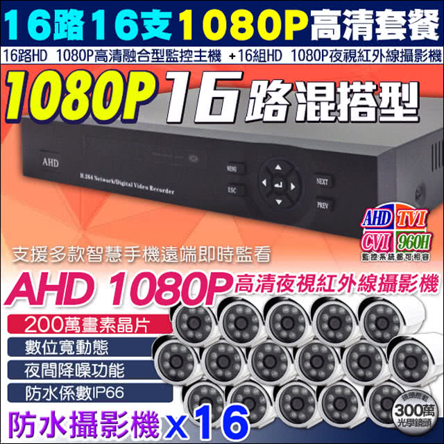 瘋購物設計【KINGNET】高清監控套餐 16路監控主機+16支1080P 戶外槍型 DVR 支援 AHD TVI CVI IPCAM 類比(監控套餐)唯一囤貨