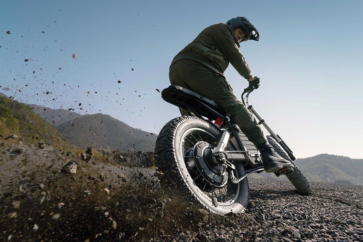 Xyber 的外型融合 café racer、胖胎電輔車與越野摩托車元素,車架採鑄鋁雙搖籃結構,搭配 20 × 12.7 公分防刺胎與倒立式雙冠前叉,前後懸吊行程分別為 110 公釐與 100 公釐,越野性能不容小覷。動力方面,搭載 6,000W 直驅馬達,最大扭力達 175Nm,在 Race 模式下僅需 2.7 秒即可從靜止加速至 32 公里/小時,堪稱「電動小鋼炮」。