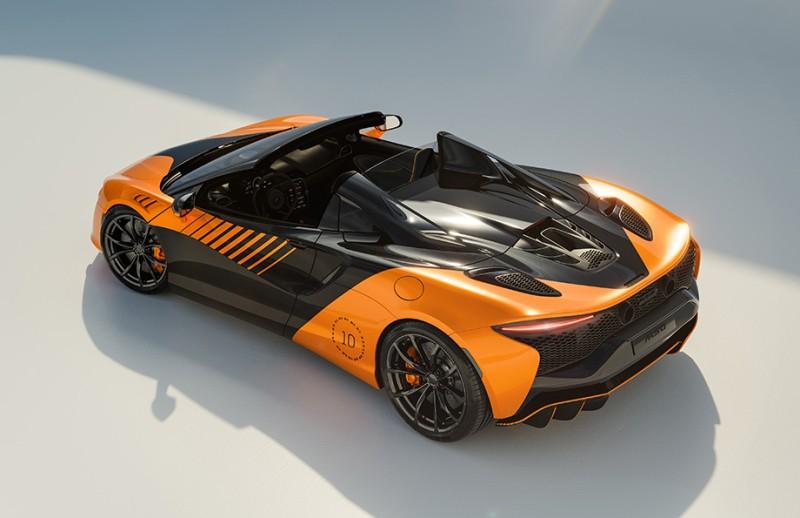 除了獨特的外觀,MSO客製化內裝細節還包括獨特的麥拉倫橙色「10 」字頭枕刺繡,以及麥拉倫橙色塗裝的12點鐘方向盤標記,同樣帶有「10」字樣。每輛車的中央控制台上都將配備客製化銘牌,彰顯其專屬尊貴。內裝採用高性能碳黑Alcantara面料和亮黑色Nappa真皮,並以麥拉倫橙色滾邊點綴,與這些定制細節相得益彰。