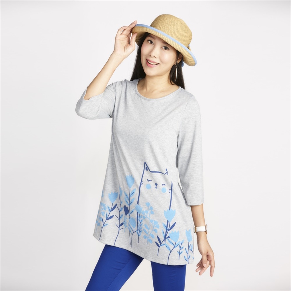06.下擺為弧型設計修飾下半身線條。前片可愛動物印花打造可愛迷人的休閒穿著。?