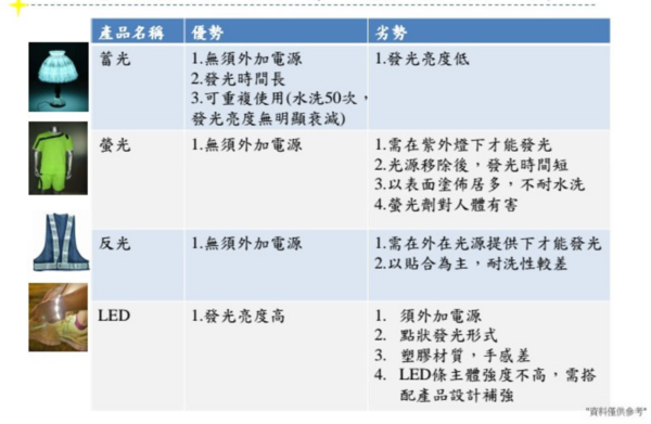 其他相關發光紡織產品比較 :