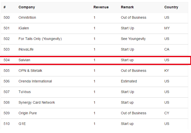 美國最有影響力的直銷類網站 Business for Home 在2016年6月14日發表了全世界Top500強直銷公司。