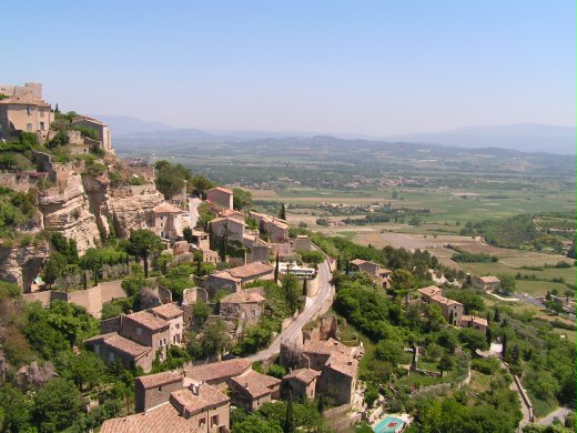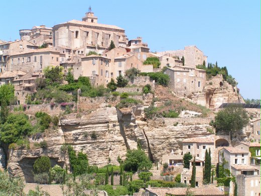 車子隨著山路逶迤盤旋而上,車上乘客陸續下車,車上只剩下兩、三個人,除了引擎喘聲之外,只有風聲呼嘯而過。山路崎嶇,巴士龐大的身軀在小路上奔走略顯笨重,默然,一個美得令人難以置信的倩影出現,我看得目瞪口呆,從Cavaillon出發經過半小時後,車子已經駛入一個我認為法國最美的鄉村─高德(Gordes),一個位在普羅旺斯Luberon山區的小村落,全村沿著山崖興建房舍,似乎懸空在峭壁山丘上,錯落有致,彷彿一個陶淵明筆下的桃花源活生生映入眼簾,那是梵谷、高更畫筆才能揮灑出的寫意。巴士停在一個有銅像的圓環旁邊,下車後,午後的艷陽高照,散發出融化一切的熱情,似乎在提醒大家,他才是主角,只想躲在樹蔭下,片刻也好。山嵐拂面,感覺份外舒暢,樹梢葉縫中灑落一地的金色陽光宛如讓清瞿如槁木死灰的石坂路塗上那亮彩脣膏,頓時有了青春光彩,整個大地都鮮活了起來。