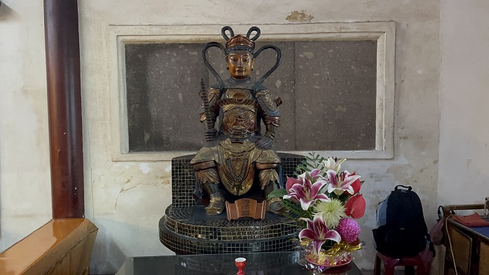 正殿門旁,分立著兩尊氣勢逼人的守門神,哼將握乾坤圈與金鞭,哈將持定風珠與金鐧,表情嚴峻,神態各異,一靜一動,守護著廟宇的莊嚴與神聖。