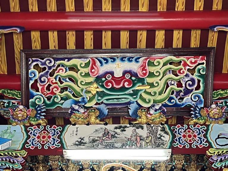 特別值得一提的是正殿上方那獅首牌匾,大多被人稱為「劍獅」,相傳取自當年漂來王船之艏。若傳聞屬實,據清代翰林院編修徐葆光所撰《中山傳信錄》之「封舟圖」記載,此物應為船艏之「免朝牌」,象徵祈求「風雨免朝」,以保航行平安。