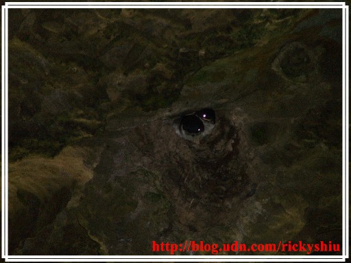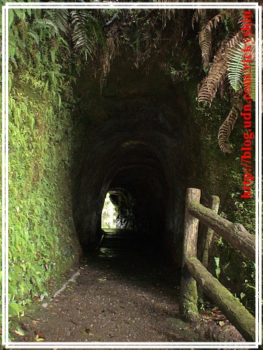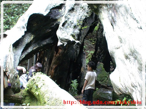 過了吊橋後,沿著右岸步道上山,途中經過先民隧道與神木,單程約莫一小時的時間,便可抵達「天地眼」。解說牌上寫著「天眼可鑑人心、地眼可照事物,為人善良者至此直感舒爽,若虧心者只覺雞皮疙瘩。」當人們氣喘吁吁,爬抵海拔約一千八百公尺高的此地之時,看見這樣的一個勸人向善的語句,還真是可以誘發人們捫心自問,是否有愧於天地啊!