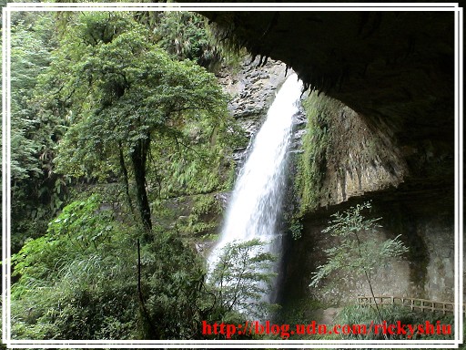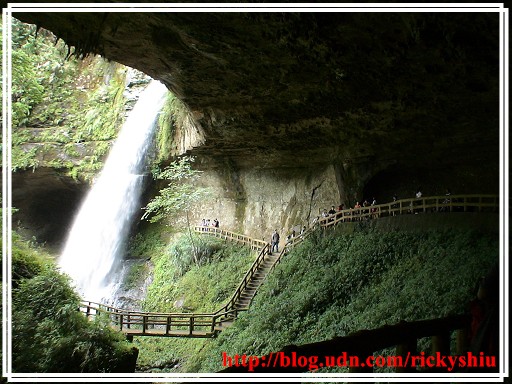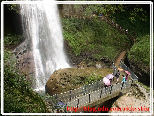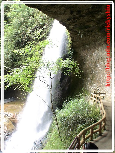 回到瀑布前的岔路,便隨即左轉前往欣賞大自然的鬼斧神工,看著那白色水瀑傾洩而下所發出的聲響,此時藉由身心的放鬆,可以感受到水流飛濺的水氣,與身體接觸後,進而激盪出思緒的火花綿延不絕。而岩洞上方除了自然形成的鐘乳石旁,甚至可以瞧見飛燕於凹洞中築巢及育雛,堪稱「集天地之毓秀,養人博之鍾靈」啊!
