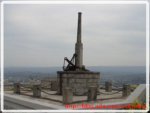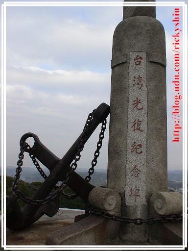 繼續往山上前去,於制高處的平台,建有一座「台灣光復紀念『埤』」。在這邊可以將通霄鎮的景色一覽無遺。雖說這原紀念日俄戰爭勝利的「日露戰爭紀念碑」也慘遭「政治正確」之手的修改,但卻也反映出以往抗戰艱辛的一面。因為,修改的人員將「碑」刻成了「埤」,正可謂「失之毫釐、差之千里」啊!