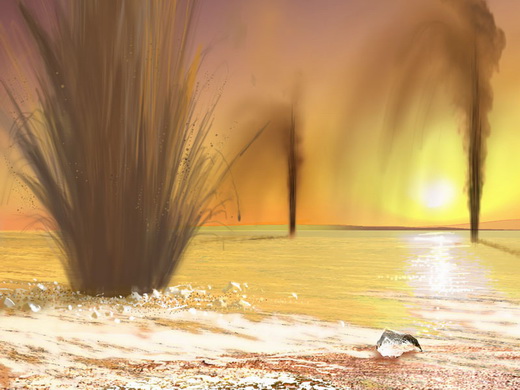 上圖沙丘所涵蓋的範圍大約是三公里,而下圖是畫家筆下的噴流想像圖。