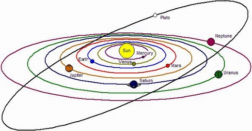 關於第三點,原文是這樣的:has cleared the neighbourhood around its orbit. 字面的意思有點模糊,但是就因為這一條,把冥王星除名了,因為冥王星的軌道插入了海王星的軌道內。(也就是說,有的時候,冥王星會比海王星靠近太陽,如上圖。)
