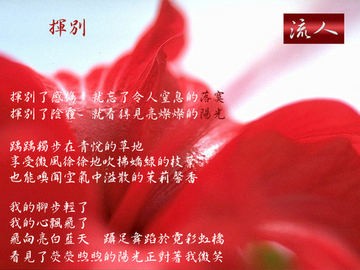 呵呵! 不是 " 花自飄零水自流" 嗎? 風追求的豈止一朵花? 而樹的挽留與否可能也改變不了花求去的決心吧? (題外話)