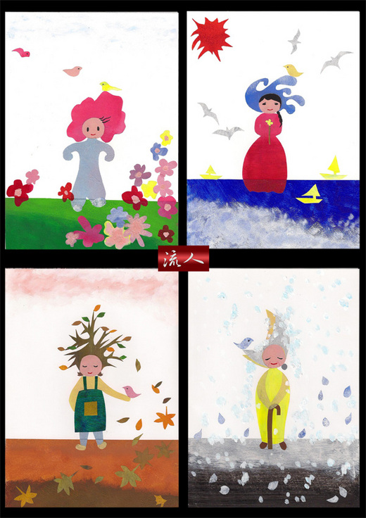 這四季心情寫照圖,每一季都有各自美麗的故事與鮮明的色彩,似是可在書局販售的圖卡或書籤,很討人喜歡。