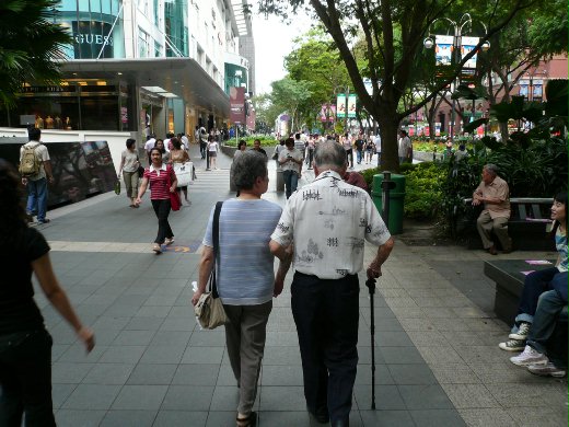 (下圖二:公公、阿嬤無論走在哪裡,一定手牽手,這是對六十二年的恩愛夫妻。圖為他們走在新加坡為繁華的烏節路上。)