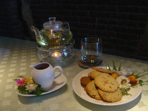 咖啡館是兩層樓的建物,尖頂紅磚,隱身於蓊蓊鬱鬱之間,桌椅擺設都饒富創意。點杯咖啡,佐以好書,美景環繞四周,每個小時都给人不同的感受;說真的,一個下午很快就過去了。