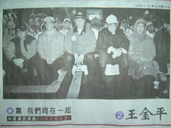 選前一天的報紙廣告,王馬兩人的文宣形成極大對比,王金平在濛濛細雨中與連宋及群眾坐在一起,馬英九則是在藹藹春陽下踽踽獨行。或許是巧合,但兩則平面廣告多少反映彼此的黨內處境,人緣極佳又得道多助的王金平,對上英姿颯爽卻孤傲挺拔的馬英九。