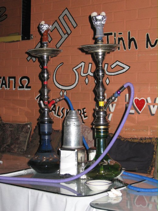 今天剛抵達LA,好友豪麟帶我到UCLA旁的一家小Bar,名喚HABIBIS,是中東人開的店。一進昏暗的店我馬上眼睛一亮:這不是我朝思暮想、魂牽夢縈的土耳其水煙嗎?