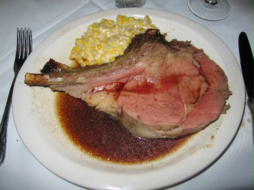 在舊金山上某牛排館,菜單很簡單,就只有Prime Rib與Steak兩種,各有四個cut方式可以選擇。我點了regular cut的Prime Rib,像鄉巴老似地強調medium rare,心裡衷心期盼,能碰到一個對火候有信心的大廚。