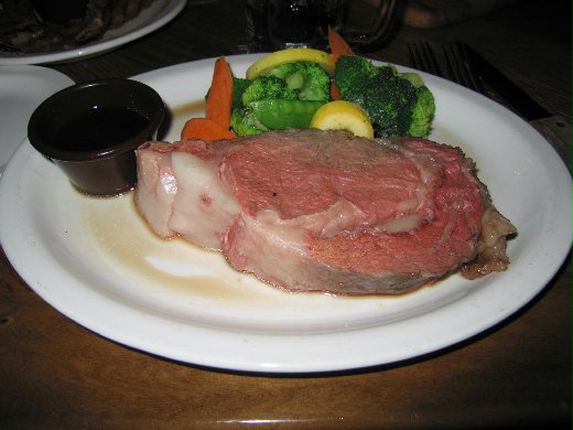 後來到Las Vegas,有天晚上餓得發慌,跑去Outback吃宵夜,也點了一塊16盎司的Prime Rib。不過一方面餓過頭了,一方面口味也差了些,剩下一口實在吃不下。(圖二)