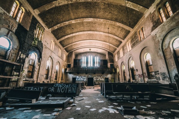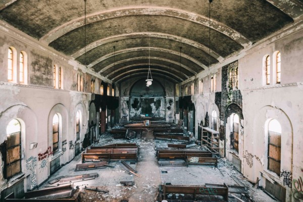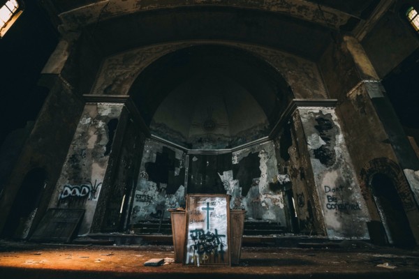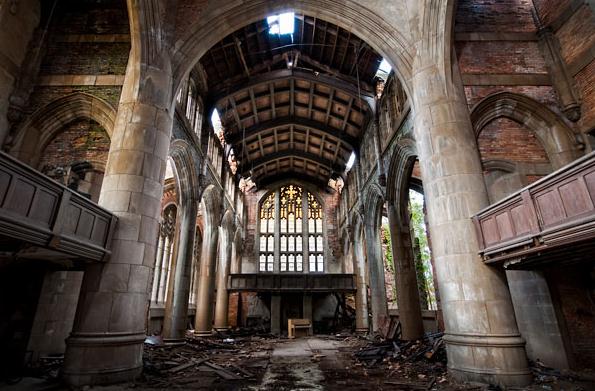 在歐洲,很多教堂已被人們遺忘,基督教堂正在逐漸消亡,陰沉破爛恐怖,有的地方到處都是塗鴉,有的地面上和腐爛的座位上盡是骨頭。