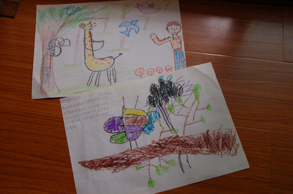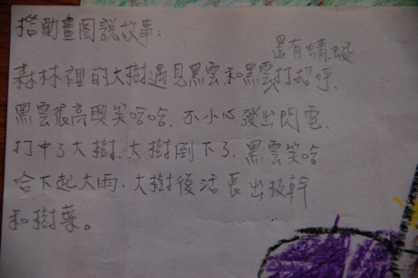 昨晚, 我和楷勛玩了藏寶圖和畫圖說故事的遊戲, 主題是: 森林, 各自發揮創意, 畫好圖後必須講圖畫的內容.