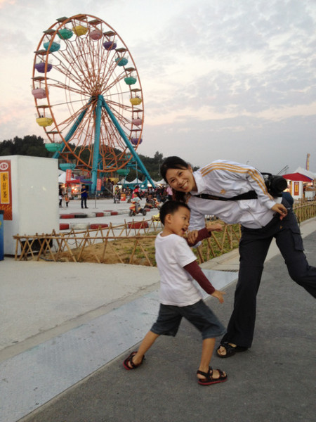 入口處, 還有發放免費的美食, 我們排隊拿到的是通霄玉米, 真的很好吃.