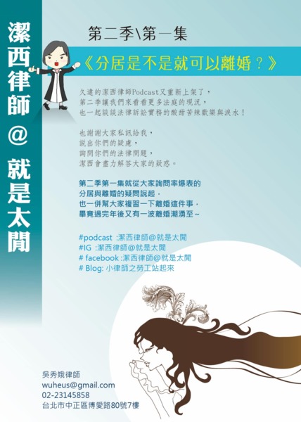 Podcast 潔西律師@就是太閒第二季第1集 ~ 分居是不是就可以離婚?
