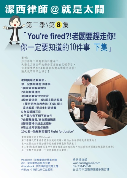 ”Podcast 潔西律師@就是太閒第二季第8集 「You're fired ?!老闆要趕走你! 你一定要知道的10件事 下集」