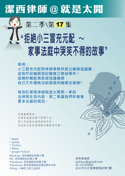 第二季第17集 “拒絕小三冒充元配 ~家事法庭中哭笑不得的故事”