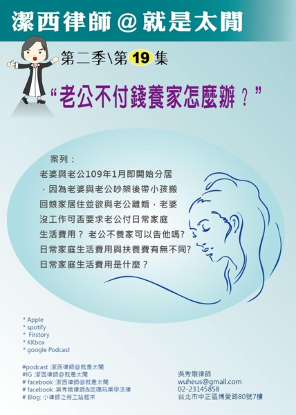 第二季第19集Podcast 潔西律師@就是太閒 “老公不付錢養家怎麼辦?”