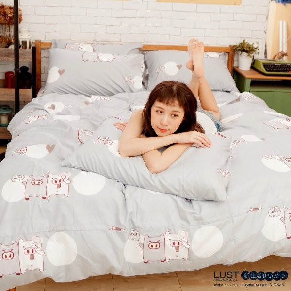 LUST寢具 【新生活eazy系列-小豬-PP】雙人6X6.2-/床包/枕套組、台灣製
