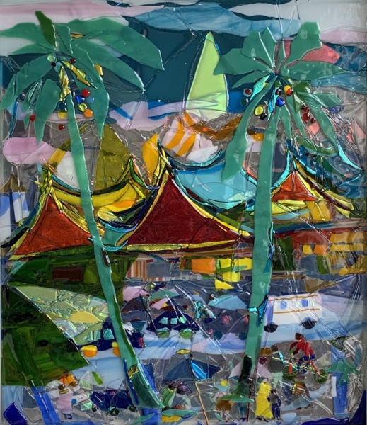 (圖:王美幸 新竹城隍廟外──車水馬龍 2020 熔合玻璃)