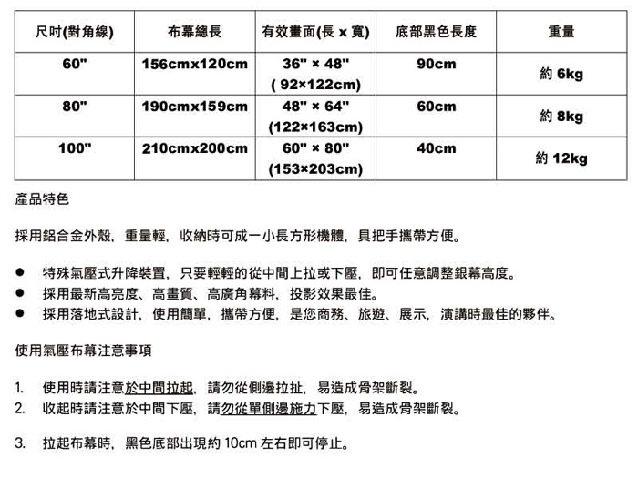 投影機 氣壓式 60吋 蓆白 布幕 討論,推薦,開箱,CP值,熱賣,團購,便宜,優惠,介紹,排行,精選,特價,周年慶,體驗,限時
