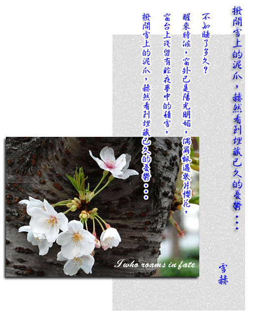 就用其中一小句,配合當日的心情,寫了這段小詩,
