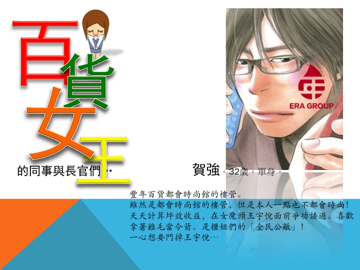 豐年百貨的頂樓大會議室剛剛散會。營業部副理王宇悅走出會議室,當電梯來的時候,其他同仁紛紛裡讓她先用電梯。