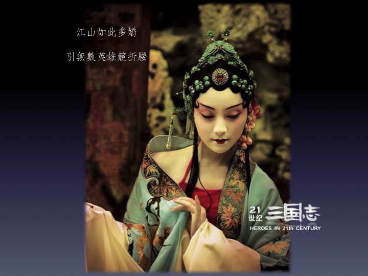 她的長髮向後梳成一個髻,由一只翠玉髮簪穿過。臉上的淡妝讓她出塵脫俗。她是曹操的妻子。姓卞,單名一個琴字。