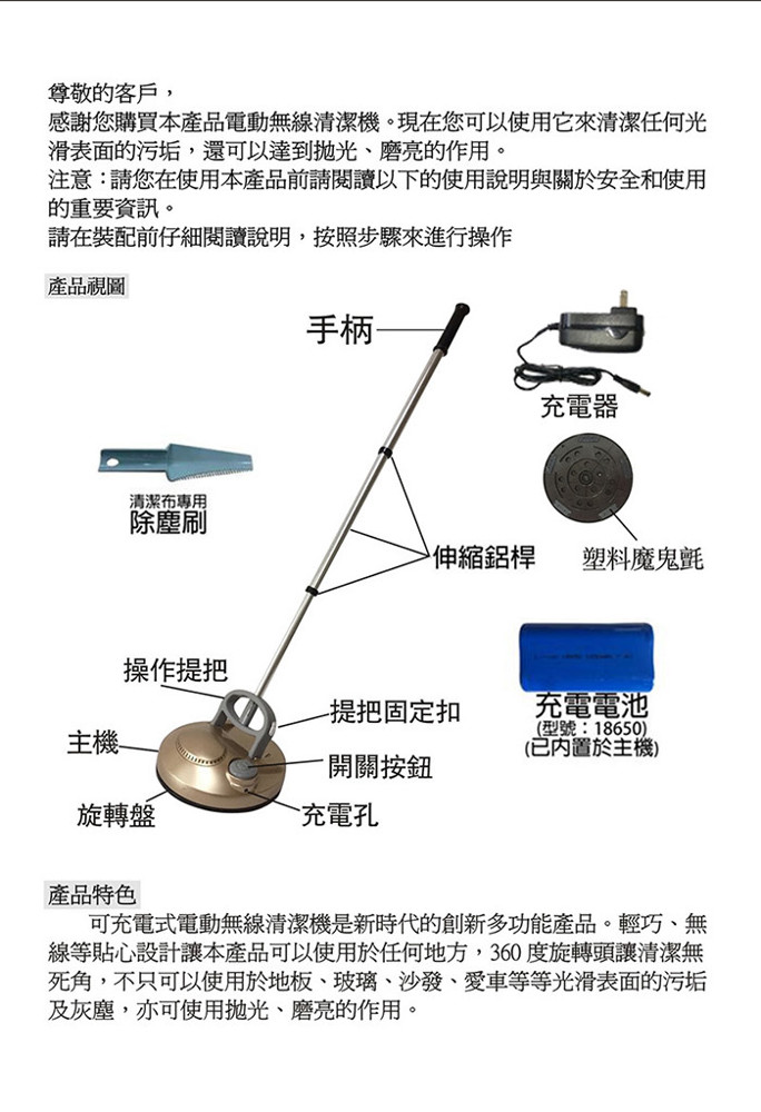 品名 :New衣麗特-電動無線清潔機(全配12塊布)