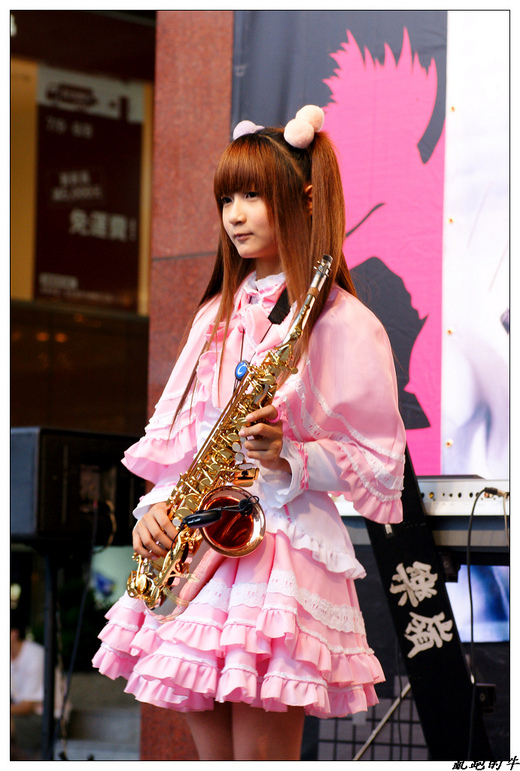Candy Xu Yahan wearing a pink short kimono to show the amazing Drum