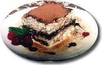 這時候你的提拉米蘇就已經完成了一半,只要將提拉米蘇放入冰箱冰個4-6個小時就大功告成啦!記住千萬不要放進冷凍庫,否則你會吃到提拉米蘇冰淇淋,怎樣,這個點心夠簡單吧!完全不用注意什麼火侯之類的,為一該注意的是在澆咖啡時注意不要澆太多,其實你可以先澆一點點然後搖晃模子在澆一點點,因為餅乾和蛋糕還會吸收起司的水氣,澆太多咖啡你的提拉米蘇就會糊糊的中吃不中看。上甜點時,可以在小盤子上砌上一塊Tiramisu,盤子邊緣灑點可可粉,蛋糕上方加上一小片新鮮的薄荷葉,就非常稱頭喔!同樣的食譜也可以動點腦筋,應用在小小的一人份蛋糕模子當中,一人一個也不怕澆太多咖啡讓蛋糕糊掉給人恥笑。