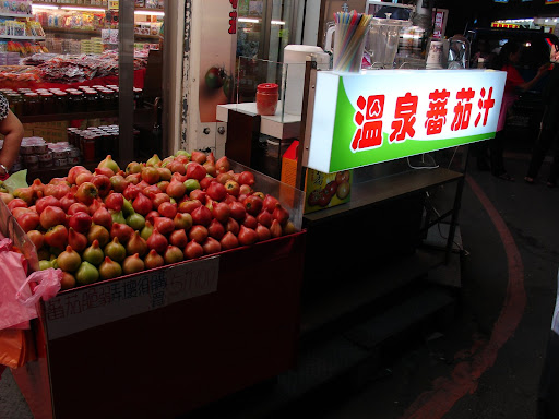 礁溪我除了逛公園外,另外看到有在買番茄汁,那個番茄的外型看來很像是RO裏的波波利,打成果汁只有加上一匙的梅粉,但味道很香甜可口,一杯約500CC,值得推薦。
