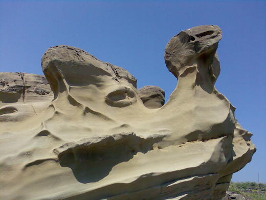 如豆腐岩、單面山、珊瑚礁岩、蕈狀岩、蜂窩岩、沉積岩、薑石等.....這些都是大自然的魔手所雕琢出奇幻的奇石,鬼斧神工的手法真的令人囋嘆不已,地殼不知經過多少變動、擠壓、翻滾、遷移了多少次,再經由海風、海水、海生物、不斷的侵蝕、風化,才造就出今天小野柳 特殊的地形、地貎、地物、地表等地理環境和生態循環系統。