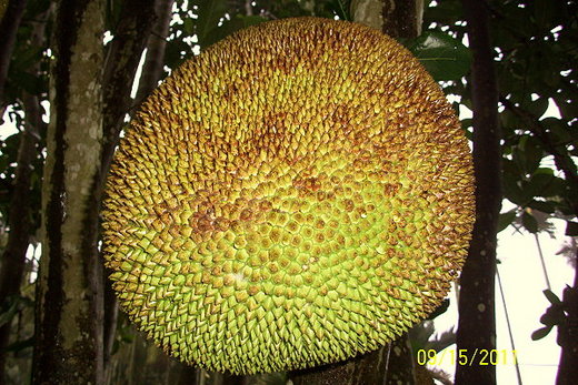 下圖是呆婆山上的水果 (ㄅ鑼蜜)像籃球大.有10幾顆.還有酪梨和柿子..
