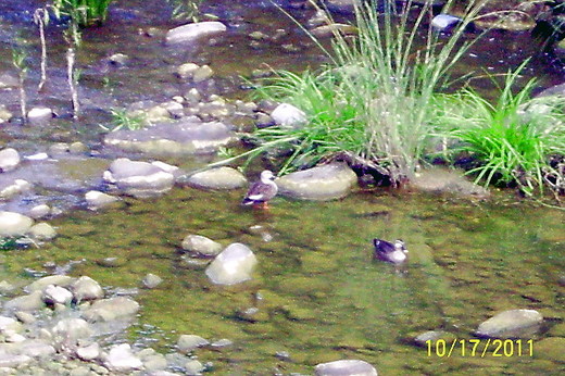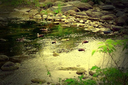 呆婆這天拍到的母鴛鴦..就在附近溪流!上次是拍到公的鴛鴦.但牠早已離開.留下2隻母鴨在草叢下蛋.終於艀出小鴨出現ㄌ!母鴨帶小鴨戲水共有5~6隻左右.據電腦資料說.鴛鴦是候鳥.大概這兒水太乾淨ㄌ.又有生態.所以在這繁衍後代.難怪拍攝時幾隻飛得好高.公的鴛鴦色彩鮮豔引人注意.正因如此不能久留.會造成母鴨下蛋的危險.所以約呆兩三天就飛走(資料說的.造物者也真是神.這點也有考慮).5月底也被呆婆拍到.但不清楚(兩次都是鄰居通知的)老人家再3步當2步跑到溪邊拍攝...分享這好生態!