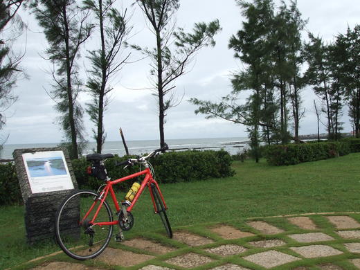 半夜幾番豪雨,擾人清夢。清晨雨歇,烏雲仍厚,心想雨中練騎,也是一種經驗,未來單車環島,難免遇雨,先體驗一番,屆時不致心生畏懼而退縮。一念之間,小紅就墜入凡塵,落得狼狽不堪.