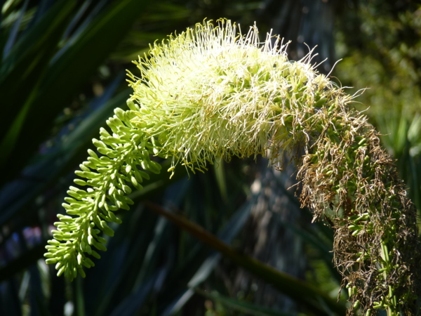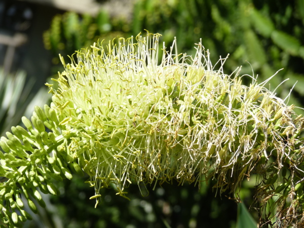 翠綠龍舌蘭為多年生常綠植物,花序長可達3公尺,花期:春季(原產地)。