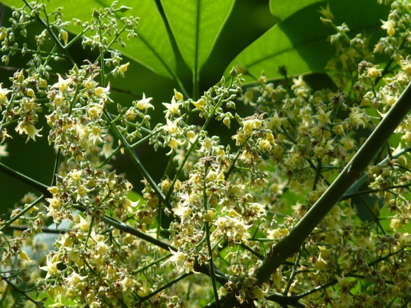 巴西橡膠樹為落葉大喬木植物,植株高可達30公尺,花期:4-6月。