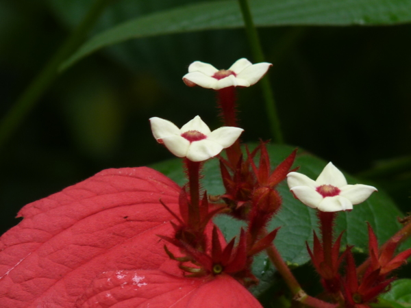 社區的步道也栽種了台灣原生種的玉葉金花,外型則顯得嬌小秀麗許多!畢竟粉葉金花為常綠灌木,而台灣原生種的玉葉金花則為蔓性灌木。