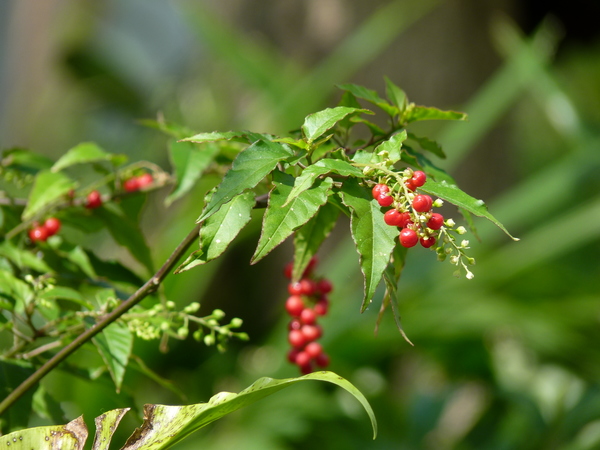 珊瑚珠為商陸科珊瑚珠屬植物,原產於西印度及熱帶美洲。又名珍珠一串紅、數珠珊瑚、念珠珊瑚等。