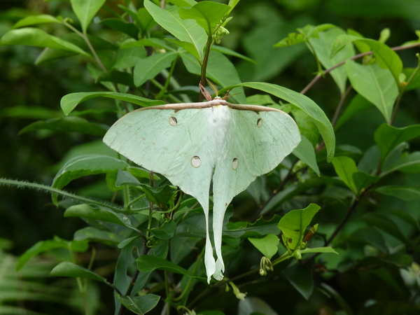 長尾水青蛾成蟲出現在3-10月,幼蟲食草為楓香的葉子。