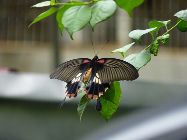 爬山回程在社區內見到大鳳蝶在身旁低飛,不一會兒停在九重葛的枝條上,如此新鮮有美麗的大鳳蝶。