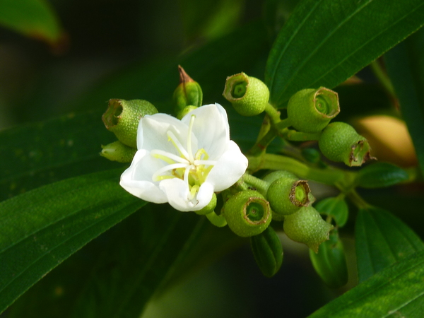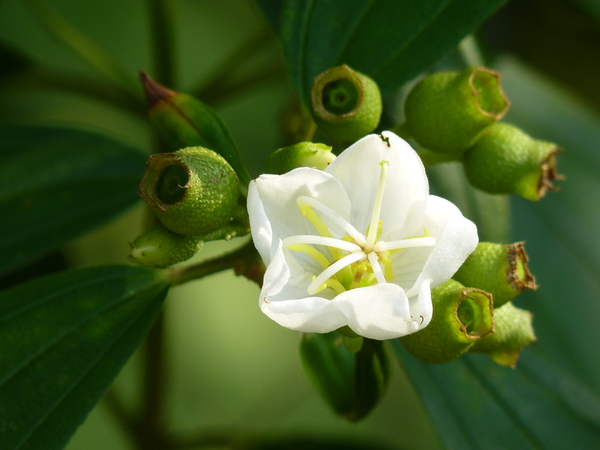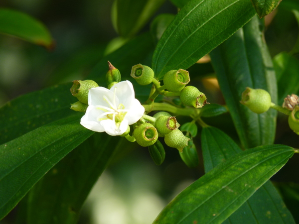 白花野牡丹又名:白花山石榴、白埔筆花、白九螺仔花、白花金石榴。